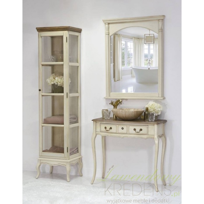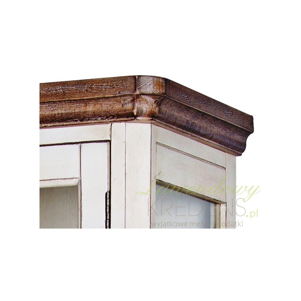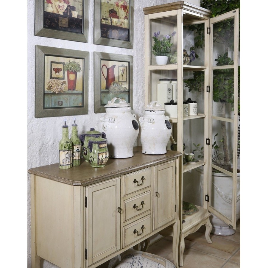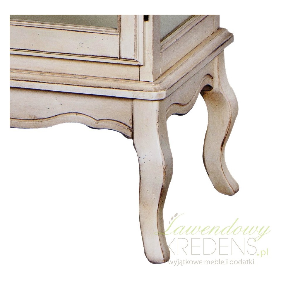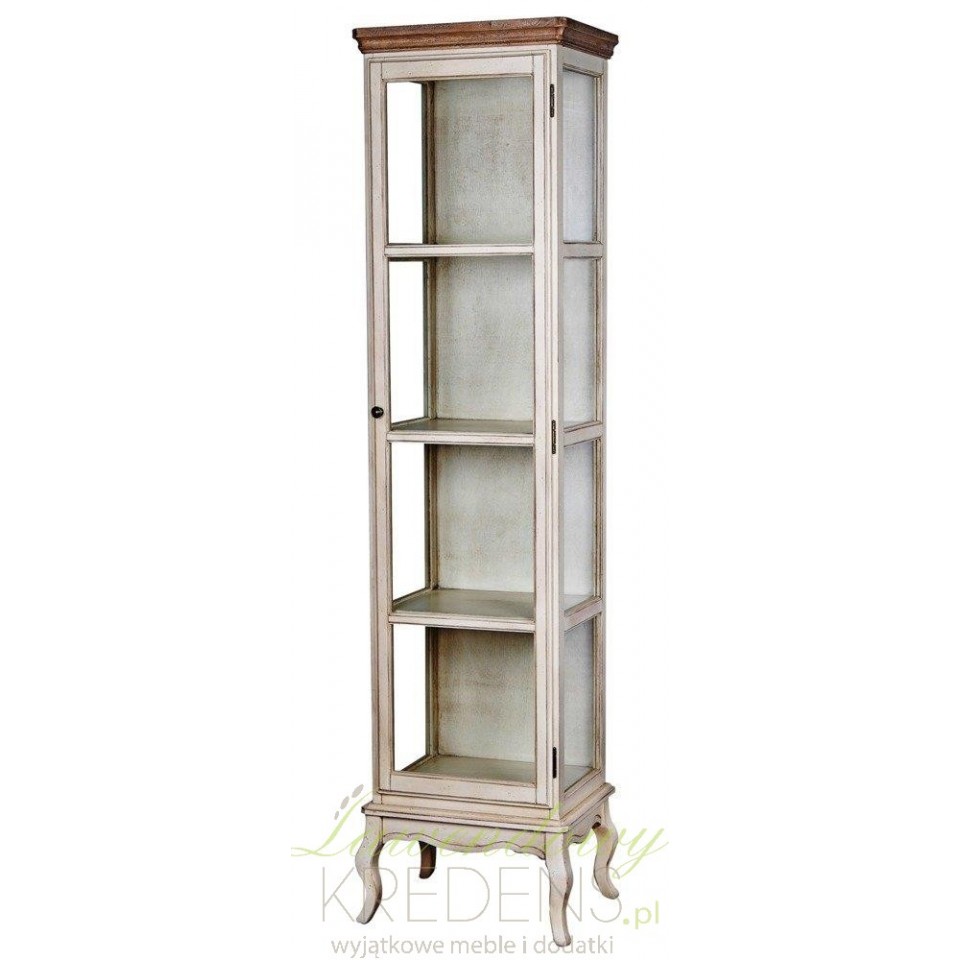 Wyjątkowa witryna w stylu prowansalskim, oszklona z czterech stron, aby uwydatnić znajdujące się w niej przedmioty.