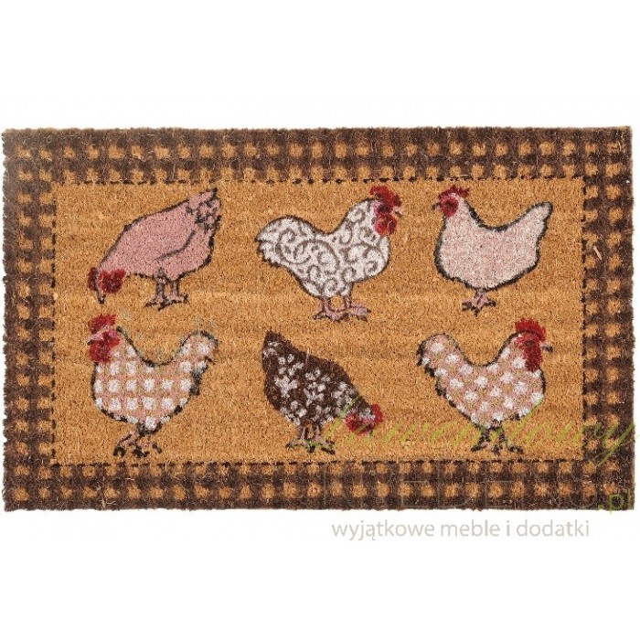 Ciekawa i intrygujaca wycieraczka kokosowa z motywem kur przyciągnie uwagę każdego gościa!