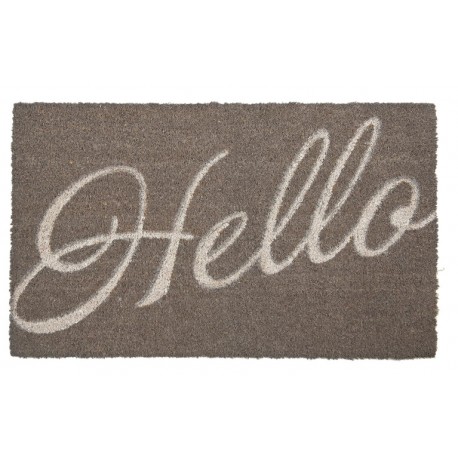 Ciemna wycieraczka kokosowa firmy Clayre & Eef z dużym napisem Hello na środku!