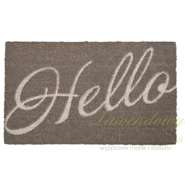 Wycieraczki kokosowe to świetny i niezwykle dekoracyjny element wystroju domu. Wycieraczka kokosowa ma szary kolor a na środku duży biały napis Hello. Wycieraczka z napisami uchroni twoje mieszkanie przed zabrudzeniem i miłym napisem zachęca do odwiedzin.