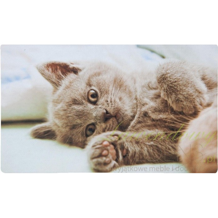 Wycieraczka wewnętrzna nie zawsze musi być nudnym akcesoriem wyposażenia wnętrza. Wybierając wycieraczkę z leżącym kotkiem, Twoje wnętrze w mgnieniu oka zyska przytulny klimat dzięki jasnym kolorom i uroczemu zwierzakowi. Sprawdzi się w toalecie, w przedpokoju lub w korytarzu. Idealna wycieraczka dla wielbicieli i posiadaczy czworonogich przyjaciół, to także pomysł na praktyczny i oryginalny upominek dla bliskiej osoby.
