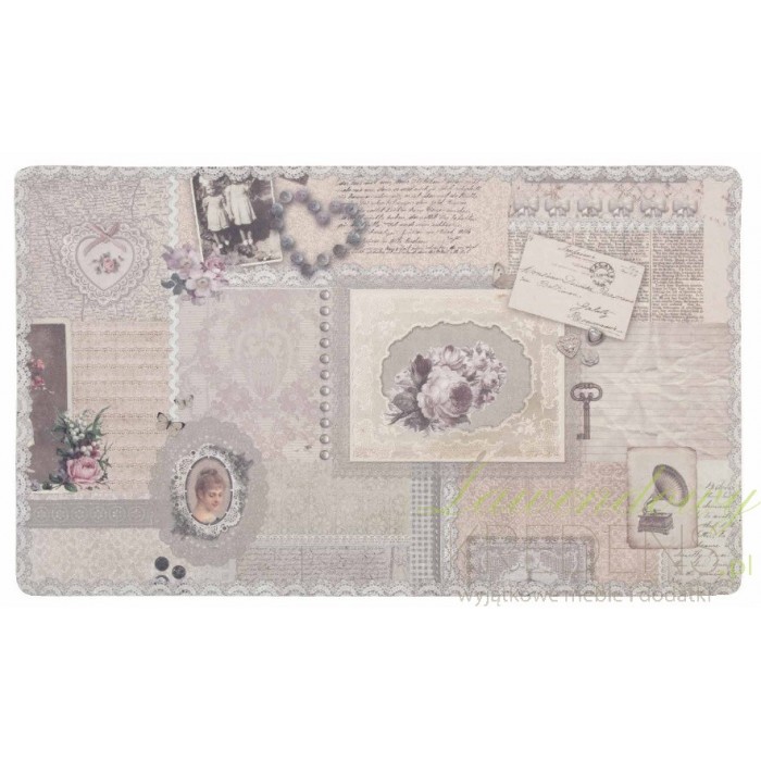 Wycieraczki do wewnątrz stanowią wspaniałą dekorację środka domu, zapewniając ponadto porządek i czystość. Wycieraczka wewnętrzna firmy Clayre & Eef ma beżowy kolor i kształt prostokąta. Widnieje na niej wiele kobiecych elementów jak: zdjęcie damy, różyczki czy serduszko. Wycieraczka prowansalska to cudowny i subtelny dodatek do wnętrz.