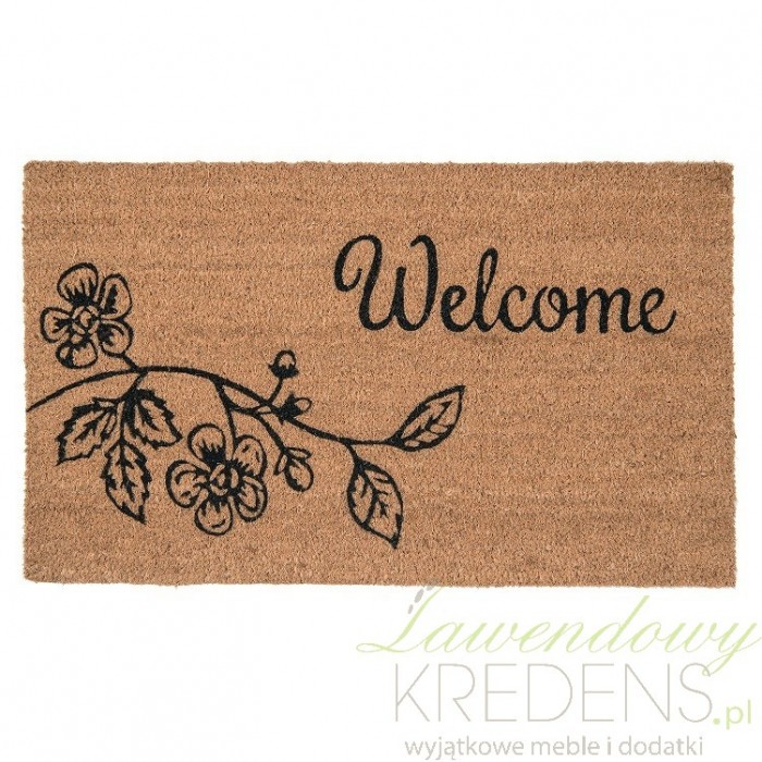 Wycieraczka kokosowa w kolorze brązowym z uroczym napisem Welcome oraz gałązką kwiatów i liści doskonale nada się przed drzwi wejściowe. Wycieraczka pod nogi to element widoczny w wielu domach i instytucjach. Jest praktyczna i pomaga utrzymać czystą podłogę po przekroczniu progu mieszkania lub innych pomieszczeń. Dlatego nie dziwi nas fakt, że jest ich tak wiele. My polecamy wycieraczki kokosowe, które będą również fajnym pomysłem na parapetówkę i nie tylko!