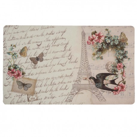 Prostokątna wycieraczka do domu Clayre&Eef z wieżą Eiffla to niezwykle ciekawe podejście do wzornictwa. Wycieraczka wewnętrzna w jasnym kolorze różu z ozdobną grafiką i napisami znakomicie podkreśli naturalny wdzięk łazienki lub przedpokoju. Wycieraczka prowansalska pomoże Ci zadbać o czyste podłogi w pięknym stylu. Wybieraj akcesoria prowanslaskie, które niebywale sprawdzają się również jako funkcjonalne gadżety.