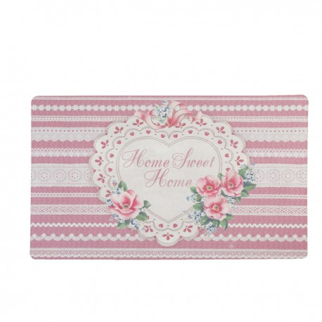 Wycieraczka prowansalska od Clayre&Eef to produkt, który przeznaczony jest do wykorzystania w korytarzach bądź przedsionkach. Wycieraczka do domu została wykonana z tworzywa w kolorze różowym i ozdobiona napisem Home Sweet Home wykonanym w sercu. Dzięki niej Ty oraz Twoi goście dokładnie oczyszczą swoje buty przed wejściem do domu. W rezultacie uporczywe zabrudzenia oraz kurz nie dostaną się do środka, a Ty w prosty sposób utrzymasz czystość w mieszkaniu.