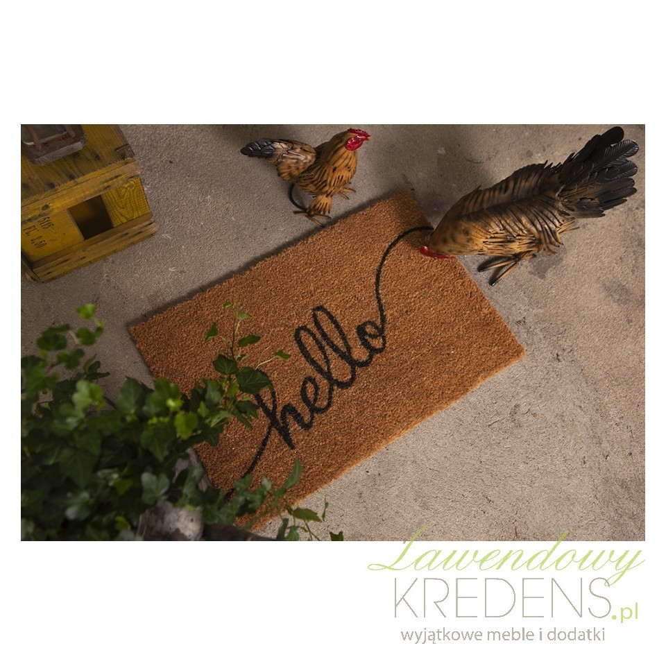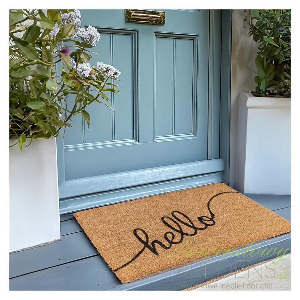 Kokosowa wycieraczka wykonana z naturalnych włókien kokosa, dla tych, którzy dbają o środowisko i porządek w swoim domu! Ozdobiona została powitalnym napisem HELLO. Skutecznie usuwa zabrudzenia takie jak piasek, śnieg i błoto, zapobiegając rozprzestrzenianiu się zanieczyszczeń wewnątrz mieszkania. W naszym sklepie znajdziesz również inne kokosowe wycieraczki od Clayre&Eef zdobione motywem ulubionych pupili.