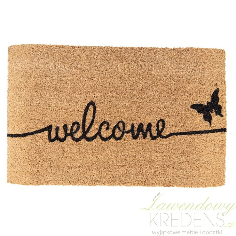 Kokosowa wycieraczka z napisem WELCOME nadaje się do użytku wewnętrznego, na klatce schodowej, w przedpokoju lub przed wejściem do domu.