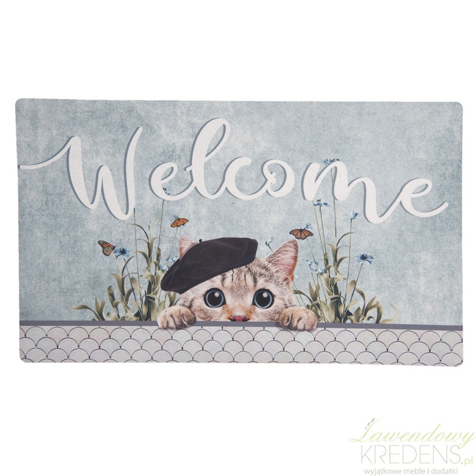 Ładna i kolorowa wycieraczka z kotem, która przyczyni się do tego, że brud pozostanie za drzwiami. Co więcej, tworzywo syntetyczne sprawia, że wycieraczka niezwykle łatwo się czyści, a w przypadku nieznacznego osadu wystarczy ją jedynie wytrzepać na zewnątrz. Wycieraczki z kotami stworzono dla miłośników czworonogów, którzy poszukują oryginalnych dodatków do domu. Wycieraczka z kotem od Clayre&Eef jest przeznaczona do zastosowania wewnątrz mieszkania bądź na klatce schodowej.