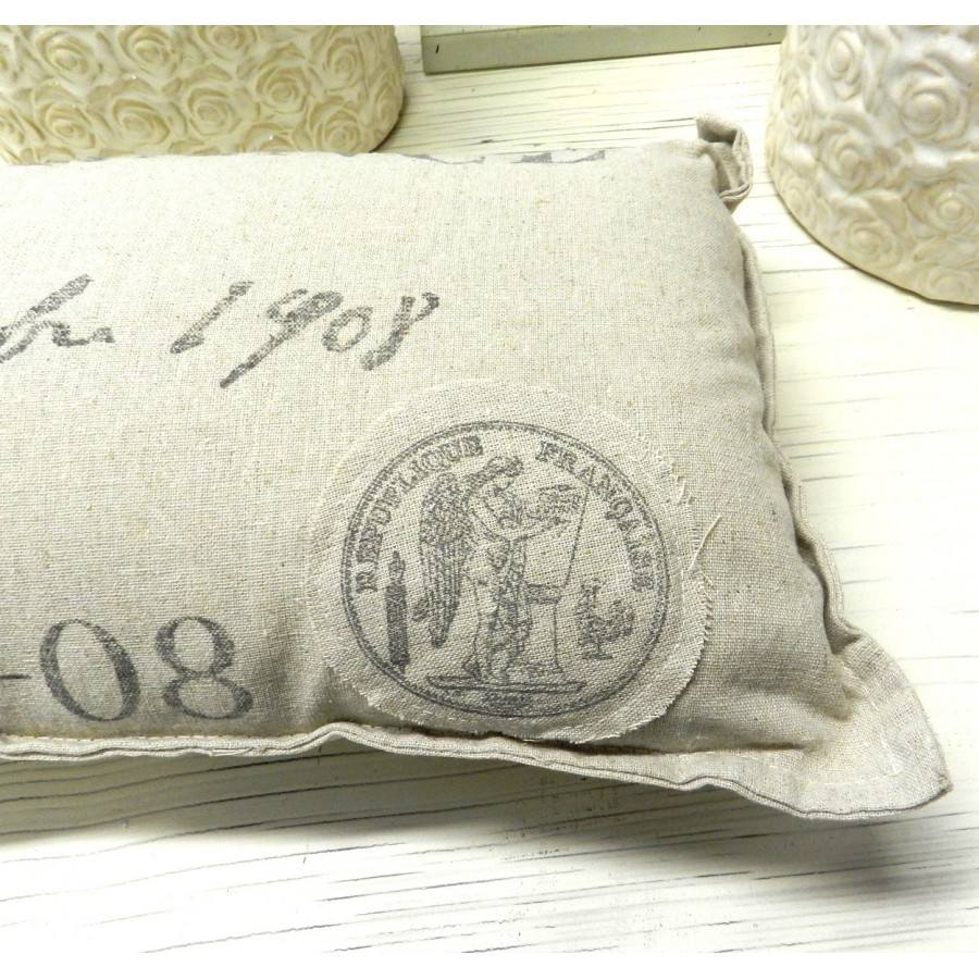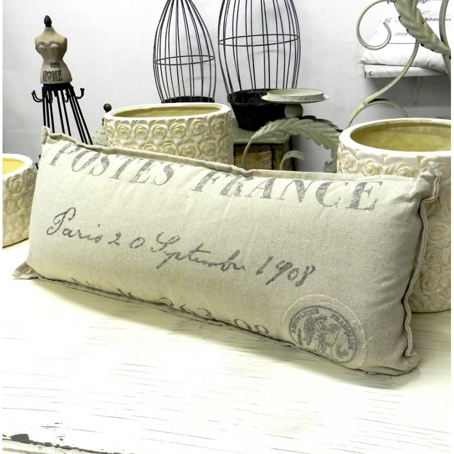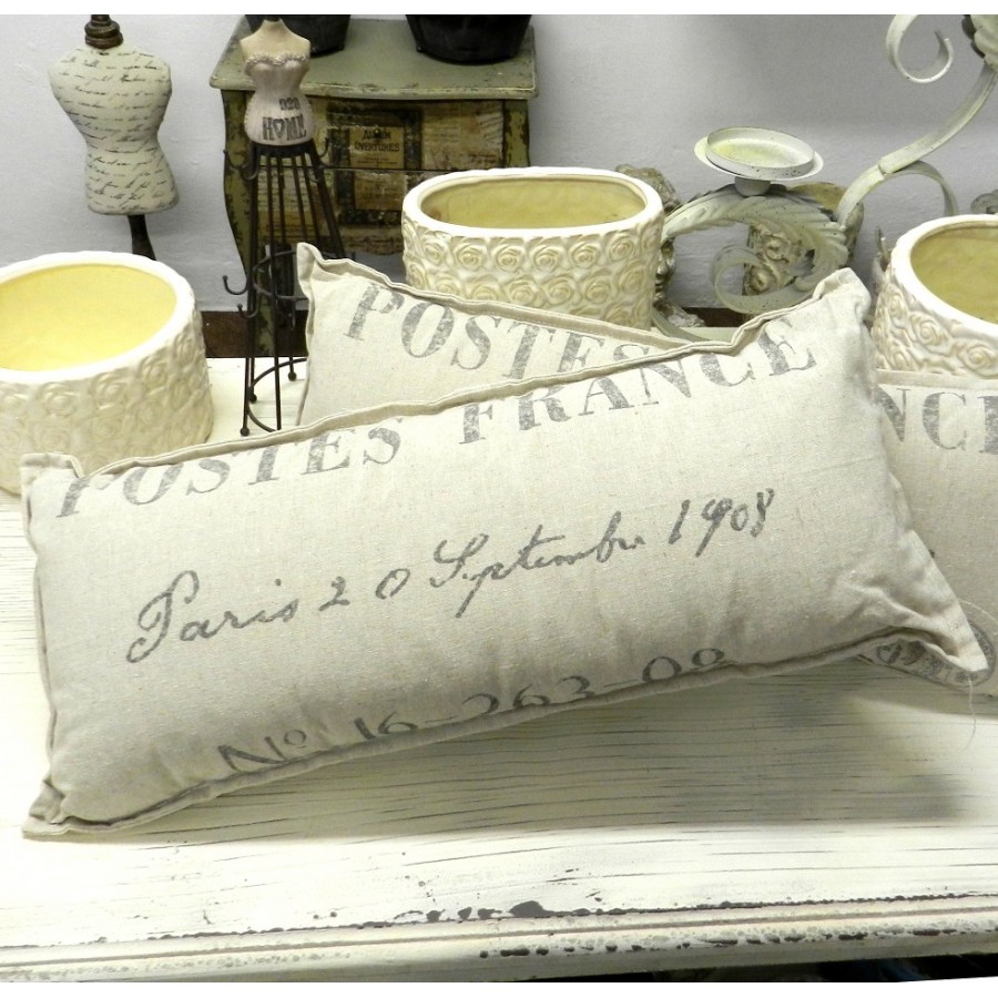 Przepiękne poduszki w stylu francuskim o podłużnym kształcie. Po jednej stronie poduszek znajdują się stylowe napisy w języku francuskim, a po drugiej schowany jest suwaczek dzięki któremu z poduszek można zdjąć poszewki i wygodnie je uprać.