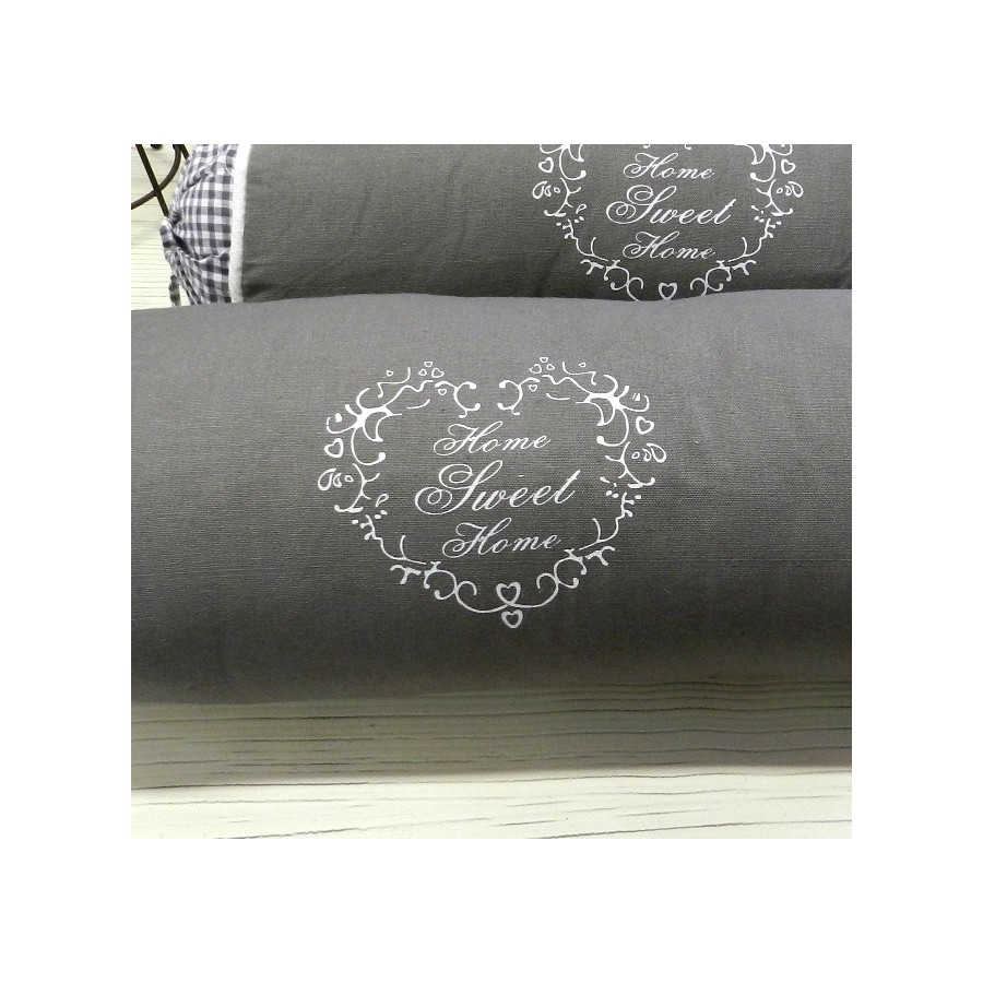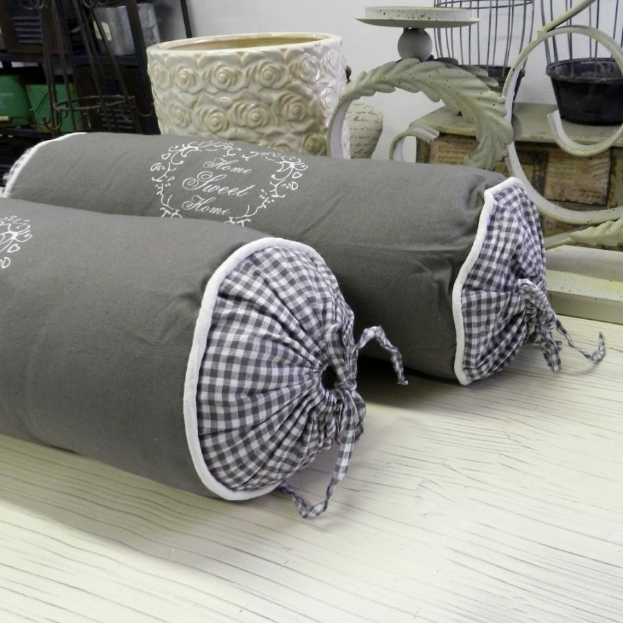 Przepiękne poduszki prowansalskie w kształcie wałka o szarej, bawełnianej poszewce z białym napisem Home Sweet Home. Na bocznych częściach poduszek znajduje się biało-szara kratka. Dzięki poduszkom francuskim SWEET HOME stworzysz w Twoim domu niepowtarzalną, ciepłą atmosferę!
