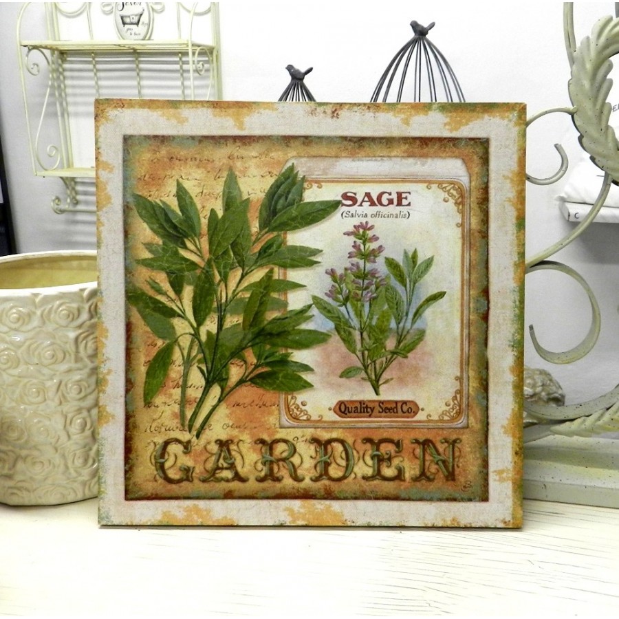 Garden Green Obrazek Szałwia to kwadratowy obrazek z motywem szałwii oraz napisem GARDEN.