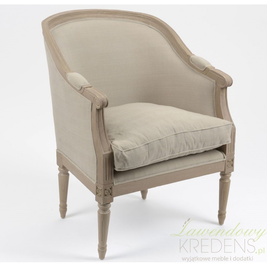 Ustawiony na czterech solidnych nogach, szeroki, wygodny fotel prowansalski z miękką poduszką! Polecamy!