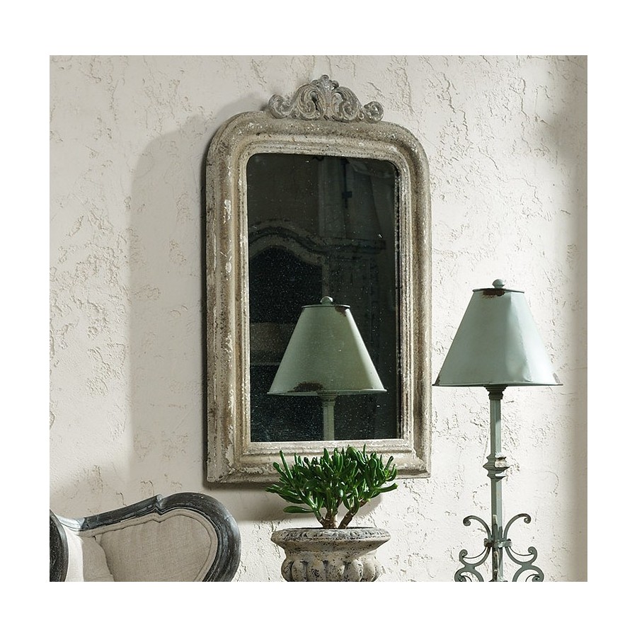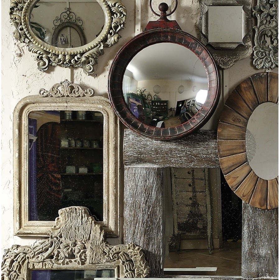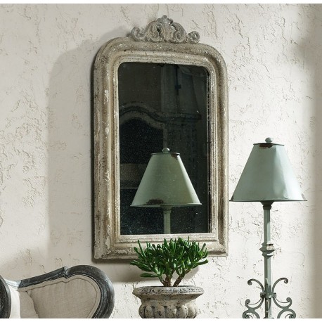 Barok Old Lustro to piękne lustro Belldeco mające postarzaną rdzawymi kropeczkami taflę i chropowatą, metalową ramę.