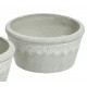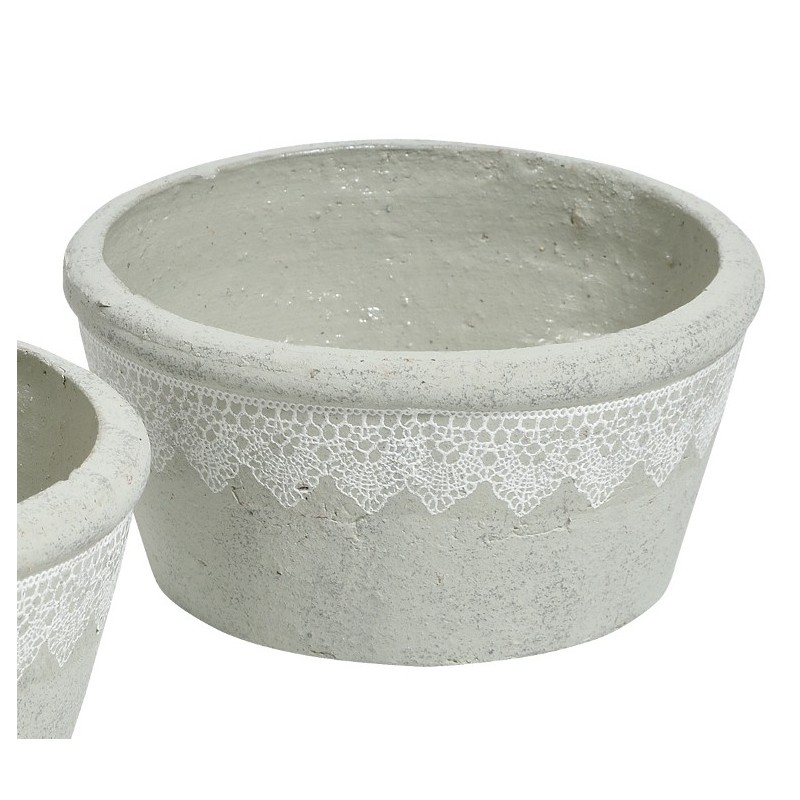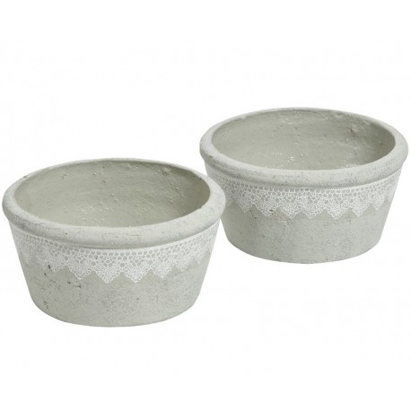 Grigio Donica Płaska z Koronką to nieszkliwiona, niska donica Belldeco ozdobiona białym wzorem przypominającym koronkę.