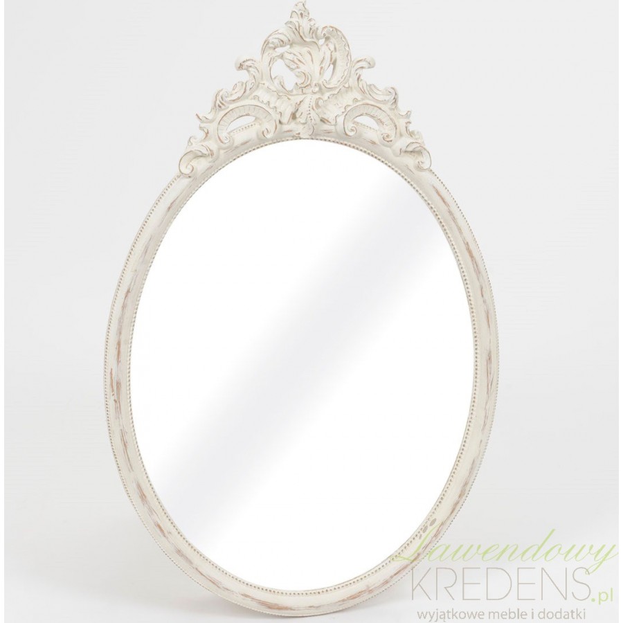 Owalne lustro w stylu francuskim z niesamowitym, nieziemskim wręcz zdobieniem w gónej części! Polecamy!