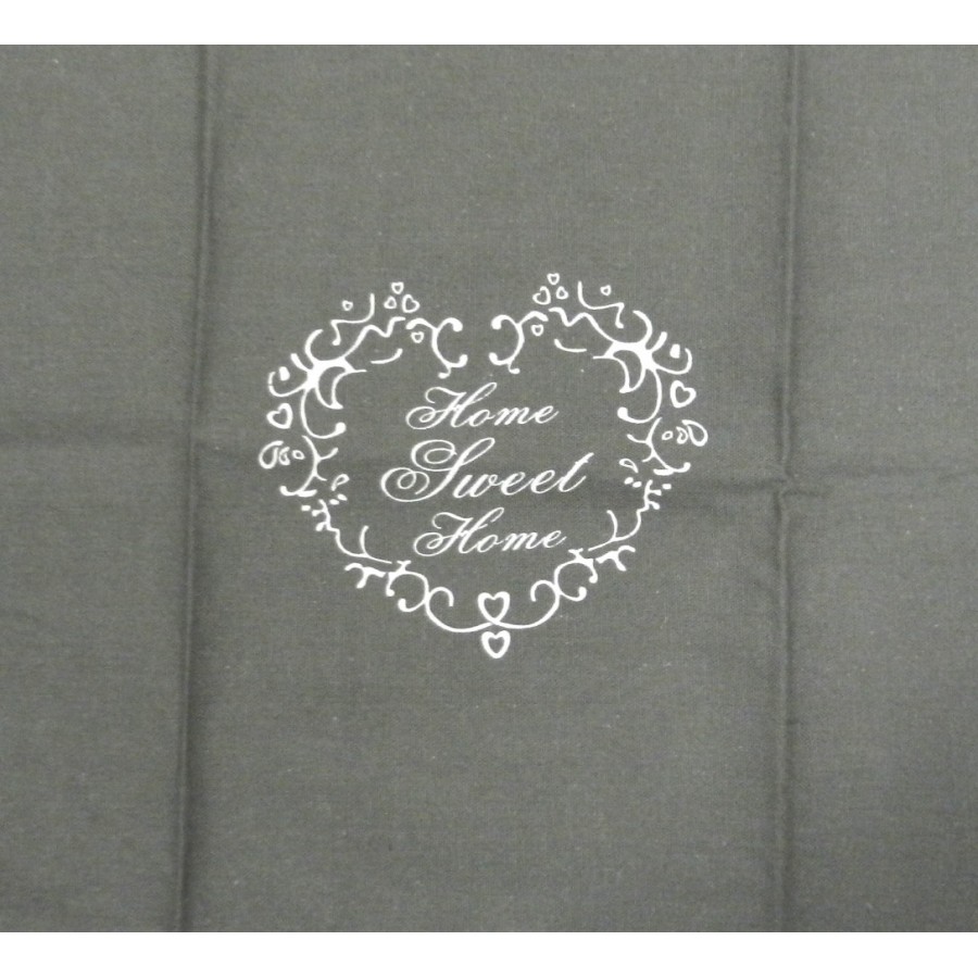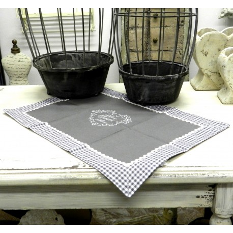 Szara serweta SWEET HOME z obwódką w szaro-białą kratę i wzorem z napisem Home Sweet Home.