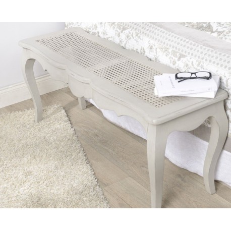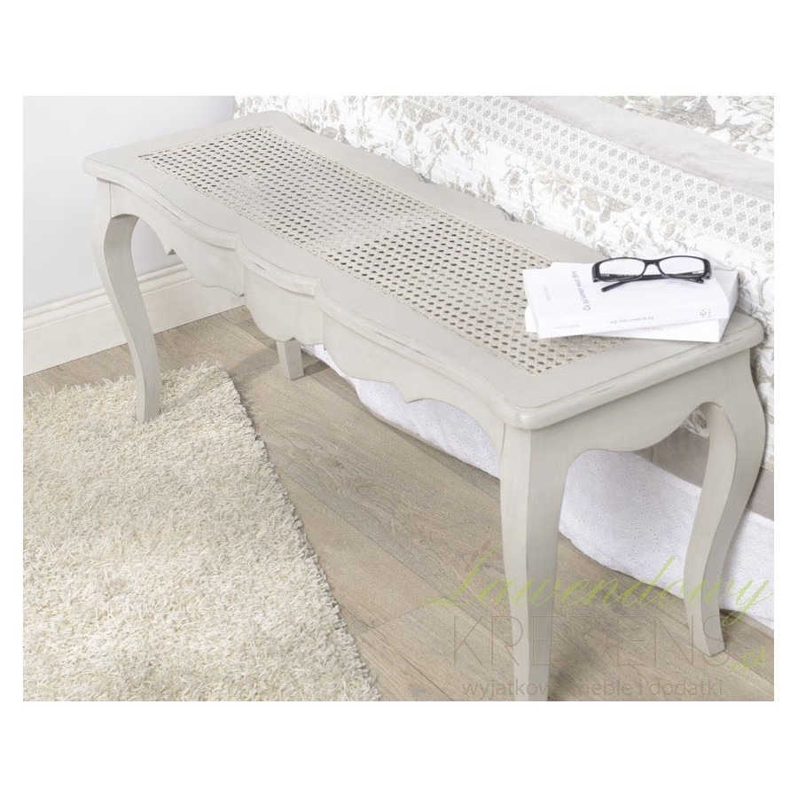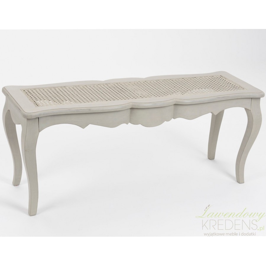 Genialna ława prowansalska jako niski stolik kawowy sprawdza się wspaniale, roztaczając przyjemną aurę i zachwycając pomysłowym blatem. Wspomniany blat charakteryzuje się tym, że posiada liczne, niewielkie otwory, które w całościowym kontekście wyglądają jak siatkowana powierzchnia. Jasny, szary kolor pogłębia prowansalski styl wnętrza!