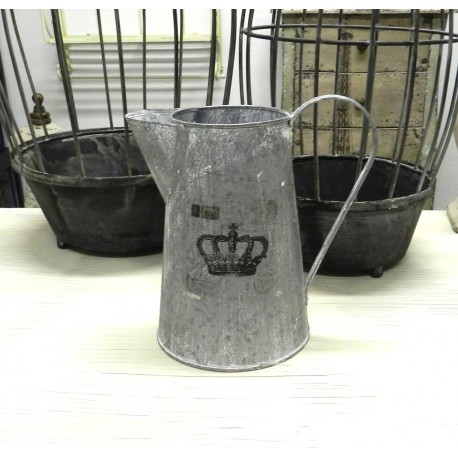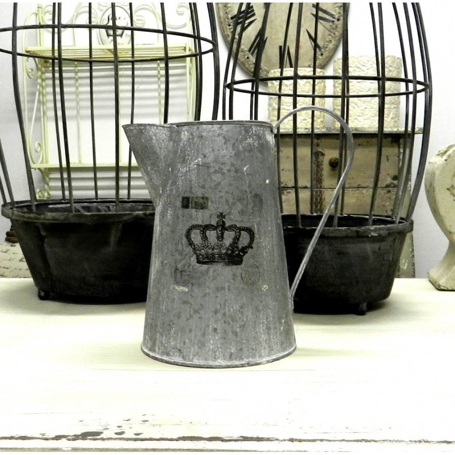 Metalowy dzban prowansalski z poręcznym uchwytem, z motywem korony na frontowej powierzchni. Polecamy!