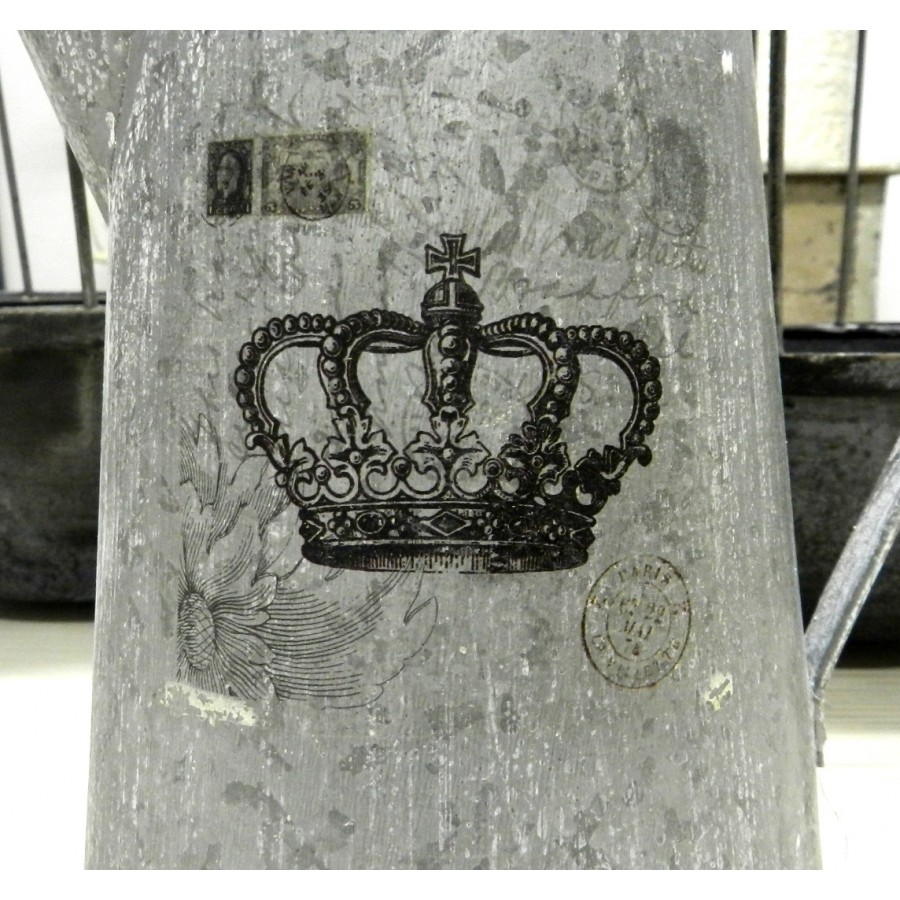 Mający szerokie zastosowanie metalowy dzban w stylu prowansalskim, z ujmującą koroną w centralnej części konstrukcji. Dzban służyć może jako konewka metalowa, wazon, sprawdzi się także jako samodzielna ozdoba w ogrodzie, na balkonie czy w domu. Powierzchnia konewki jest celowo przecierana i zadrapana, aby nadać całości iście prowansalskiego charakteru!