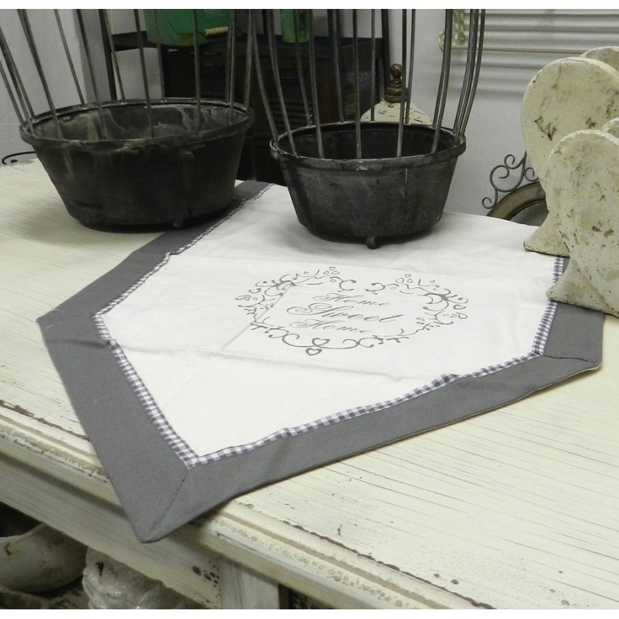 Bawełniane bieżniki stołowe z subtelnym, szarym napisem Home Sweet Home.