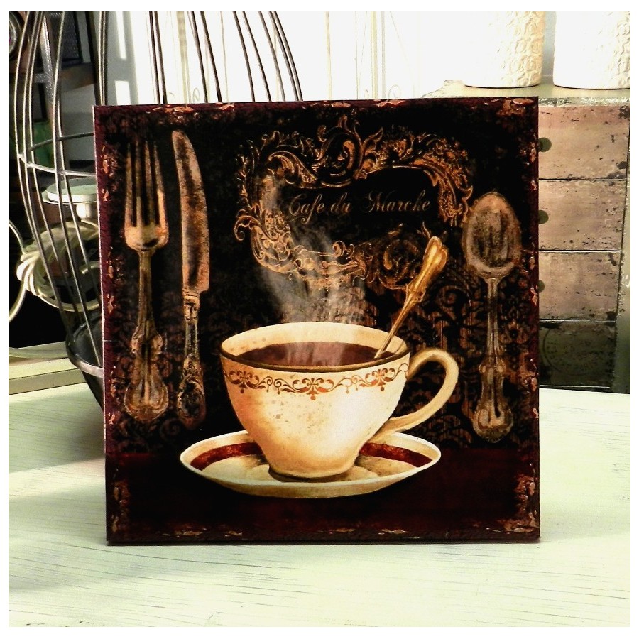 Kwadratowy Vintage Obraz Kawa to stylowy obraz, idealny do kuchni lub jadalni.