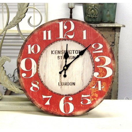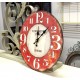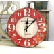 Zegary Retro numer 6 to oryginalne zegary ścienne, których środek ma jasny kolor, a część zewnętrzna ma kolor czerwony. Cała tarcza zegara jest stylizowana na stare, pomalowane deski, dzięki czemu zegary te wyglądają bardzo efektownie.