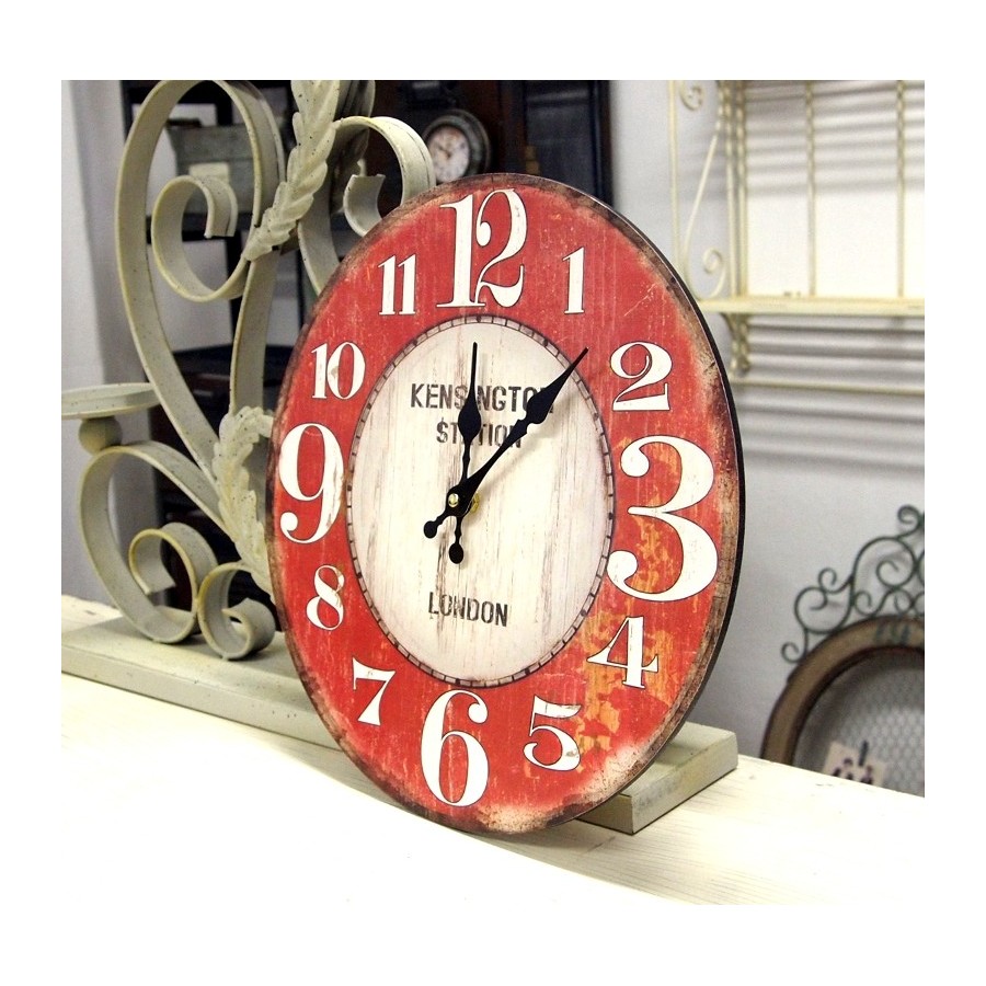 Czerwono-biały zegar retro z czarnymi napisami doda energii każdym czterem ścianom!