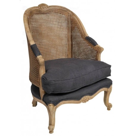 Fotel Bristol Belldeco to piękny, duży fotel w stylu angielskim wykonany z drewna mangowego. Ażurowe oparcie fotela Bristol wykonane jest natomiast z rattanu, a podłokietniki, siedzisko i poducha obite lnem.