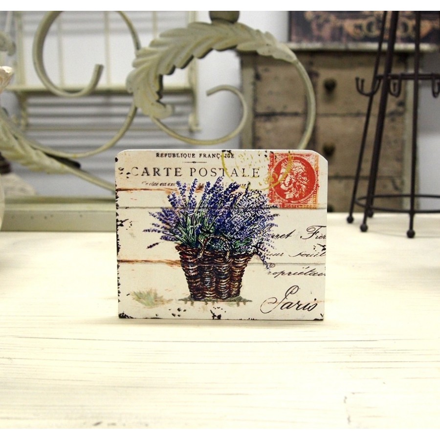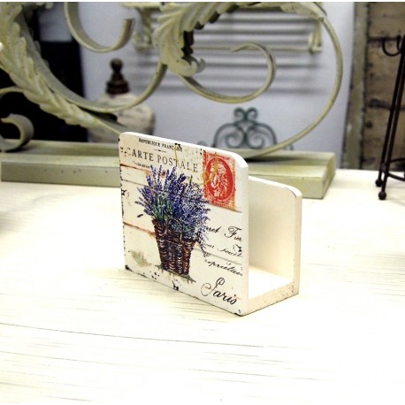 Drewniany, prowansalski serwetnik z motywem lawendy wykonany z drewna i celowo postarzany.