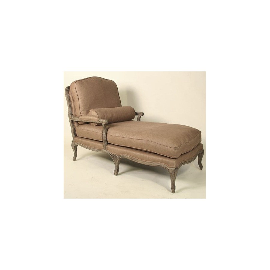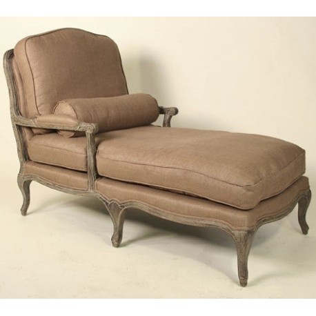 Piękny, wygodny szezlong w stylu prowansalskim z dębową, bieloną ramą oraz brązową tapicerką wykonaną z bawełniano-lnianej, wytrzymałej tkaniny. Poduchy można zdjąć z szezlonga co ułatwia jego wygodne czyszczenie. Także obicia można z łatwością zdjąć z poduch dzięki ukrytemu suwaczkowi. Nasze szezlongi to wygodne i oryginalne meble prowansalskie idealne dla każdego kto ceni sobie solidność i wygodę.
