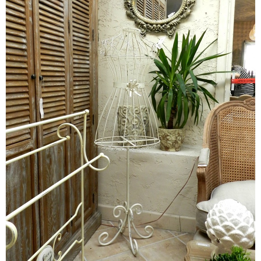 Kremowy manekin retro wykonany z metalu to stylowa dekoracja do salonu lub sypialni.