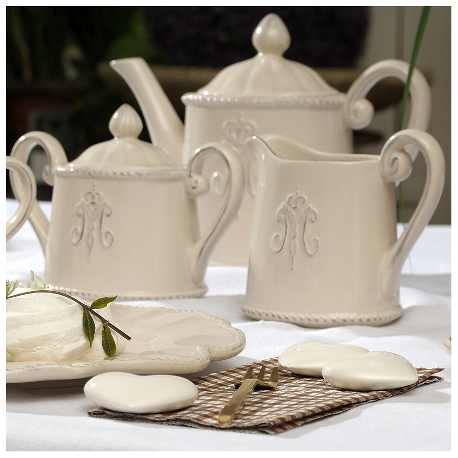 Mlecznik i cukiernica Nicea Belldeco z wypukłym wzorem w kształcie litery M.