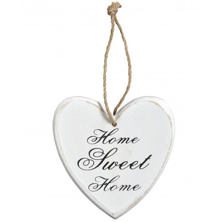 Romantic Zawieszka Serce to urocza zawieszka Belldeco w kształcie serca zawieszonego na parcianym sznurku. Zawieszka Romantic ma biały kolor z jasnobrązowymi przetarciami na krawędziach i czarnym napisem Home Sweet Home.