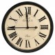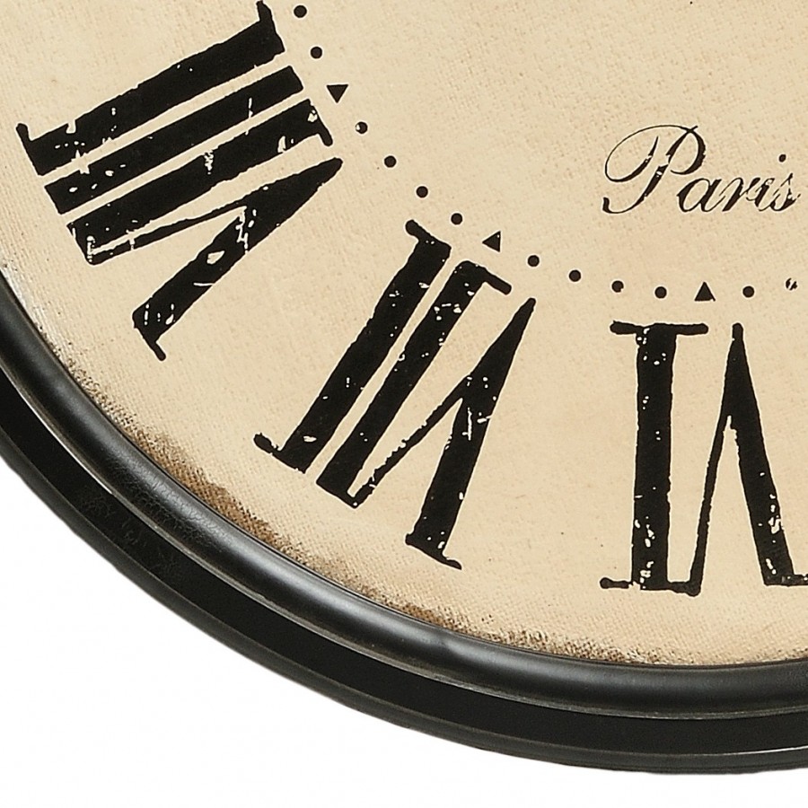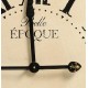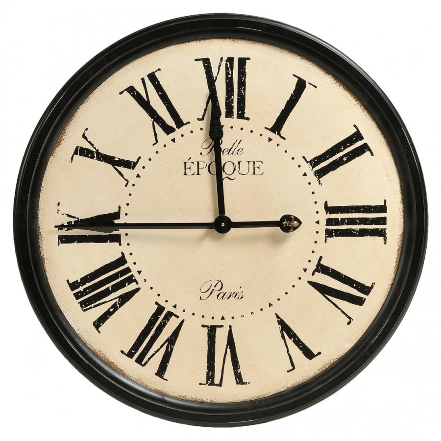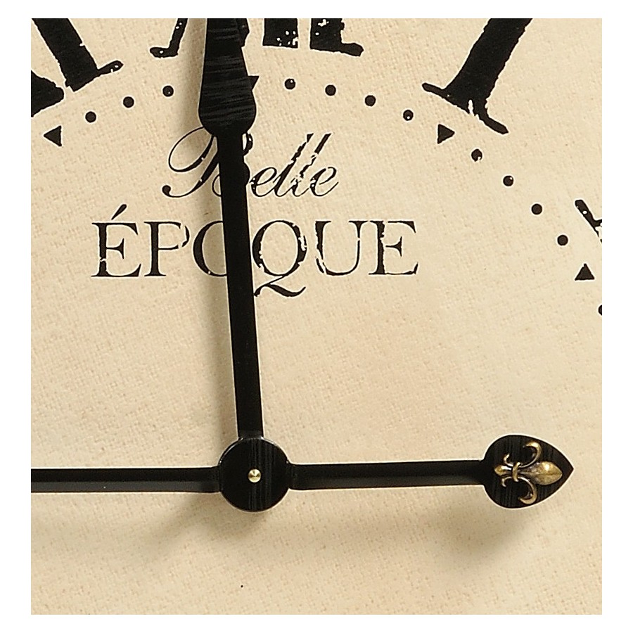 Retro Zegar Belle to duży zegar Belldeco w stylu prowansalskim. Zegar ma okrągły kształt i wykonany jest z drewna na którym znajduje się warstwa tkaniny jutowej pomalowanej na kolor kremowy. Czarna rama zegara wykonan jest z drewna. Dzięki przecieranym napisom, cyfrom rzymskim oraz metalowej lilijce znajdującej się na czarnych, metalowych wskazówkach Zegar Belle wygląda bardzo stylowo i elegancko.