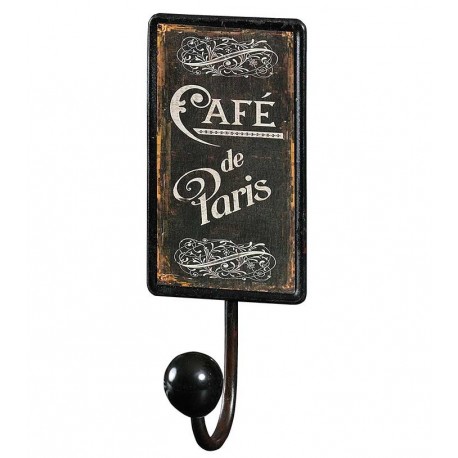 Czarny, metalowy wieszak Belldeco w stylu retro z napisem Cafe de Paris.