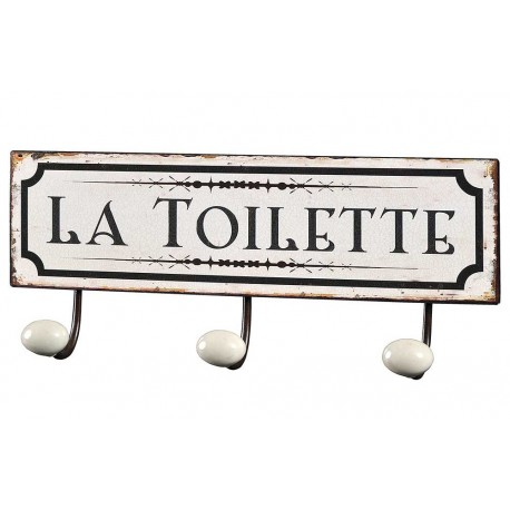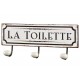 Potrójny, łazienkowy wieszak Belldeco z napisem LA TOILETTE. Wieszak wykonany jest z metalu.