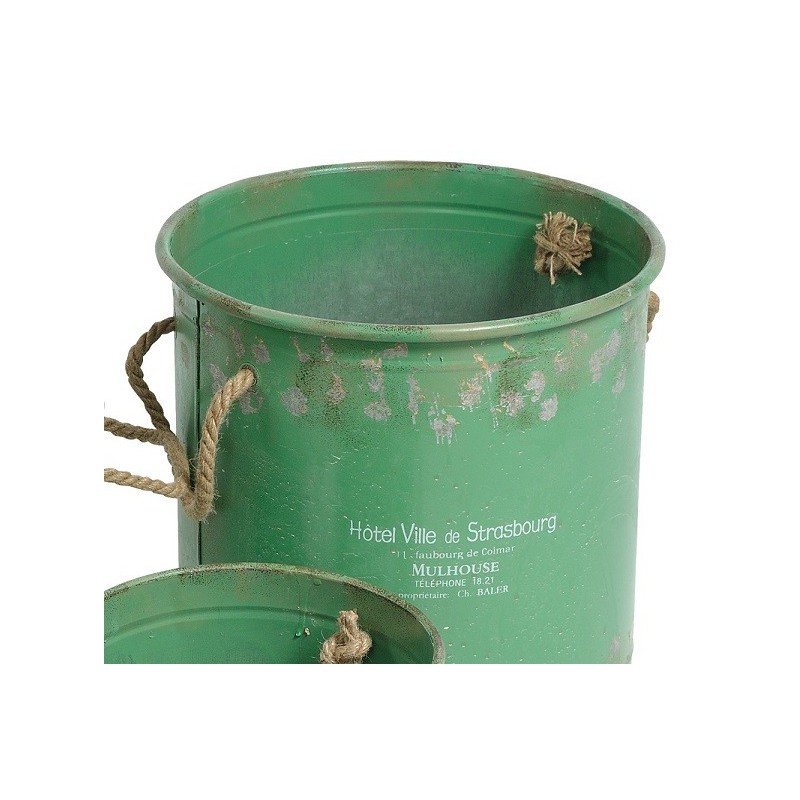 Stylowe wiaderka Hotel Ville Green marki Belldeco zrobione z ocynkowanej blachy. Na wiaderkach znajdują się białe, francuskie napisy a uchwyty wiaderek wykonane są z parcianego sznurka co wygląda bardzo efektownie.
