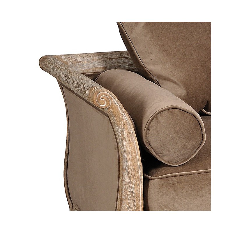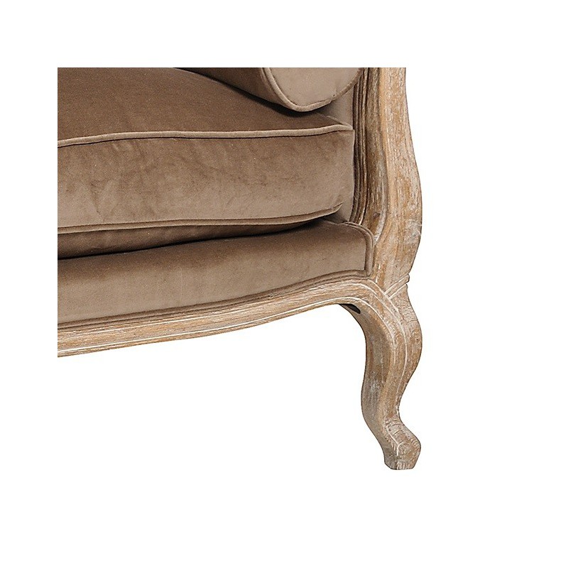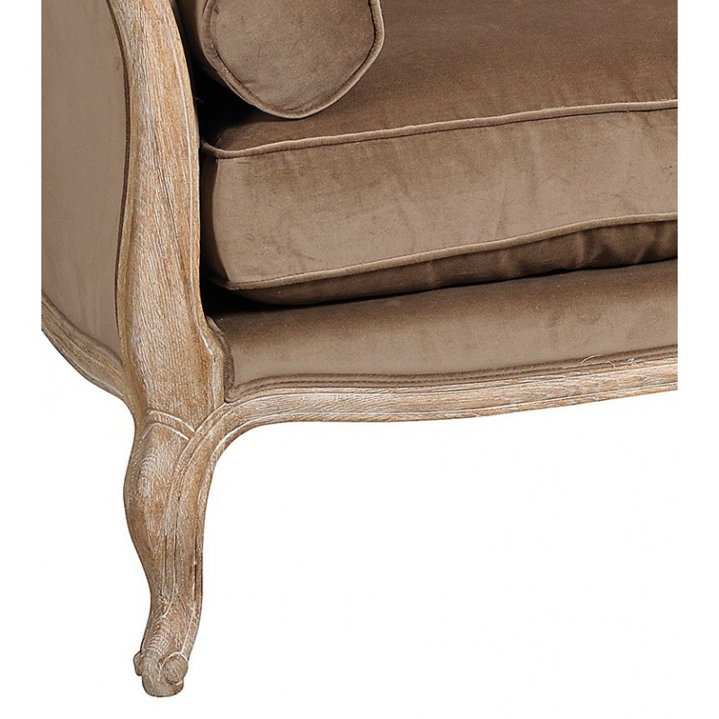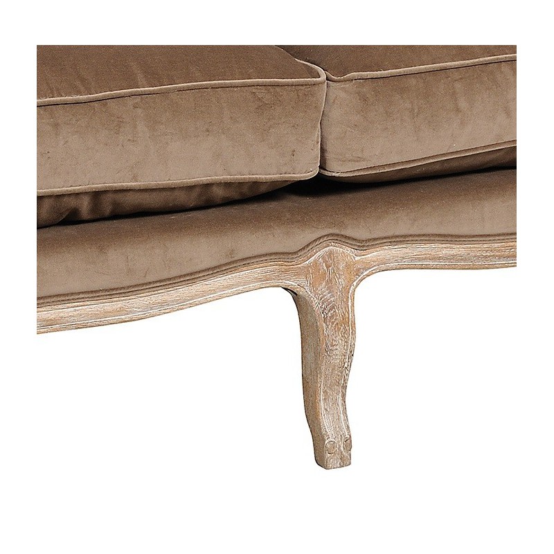Sofa Bristol to przepiękna sofa Belldeco, której rama wykonana jest ze szczotkowanego i bielonego drewna dębowego, natomiast tapicerka z brązowego aksamitu. Poduchy leżące na siedzisku można zdjąć z sofy, a pokrowne można zdjąć z poduch dzięki ukrytemu w nich suwaczkowi. Wypełnienie poduch to mieszanka pierza z pianką syntetyczną, dzięki czemu poduchy nie zniekształcają się.