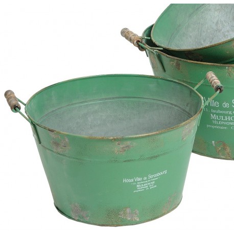 Metalowa wanienka Belldeco z kolekcji Hotel Ville Green z drewnianymi uchwytami.