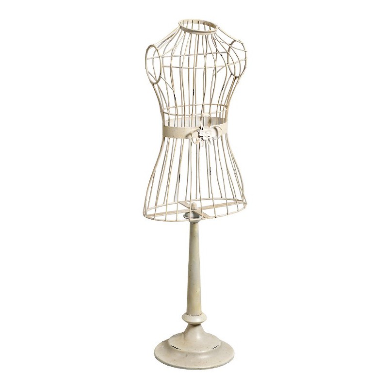 Śliczny, kremowy manekin retro marki Belldeco wykonany z metalu i celowo postarzany.