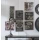Metalowe obrazki Belldeco z pomarańczowymi oraz kremowymi napisami na czarnym tle.