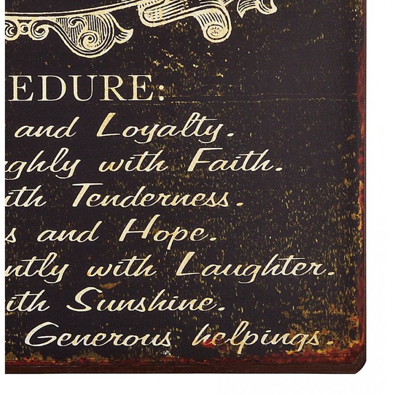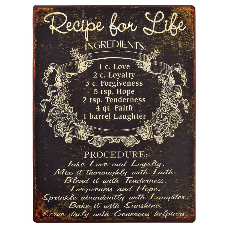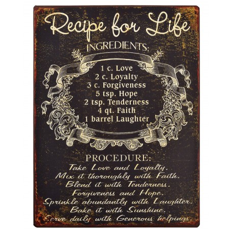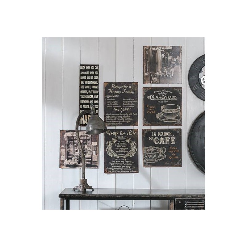 Oto metalowe obrazki Belldeco, na których znajdziesz przepis na życie! Obrazki są niezwykle urokliwe, wykonane z metalu i celowo postarzane. Mają czarno-rdzawy kolor z kremowymi napisami. Obrazki te świetnie sprawdzą się powieszone w domu jak i jako ciekawe dodatki do restauracji lub kawiarni.