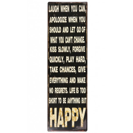 Tabliczki Happy to metalowe obrazki Belldeco z wypukłymi napisami, czyli urokliwe, oryginalnie wyglądające dekoracje w stylu retro. Metalowe tabliczki świetnie sprawdzą się zarówno w domu jak i jako dodatki do restauracji czy kawiarni.