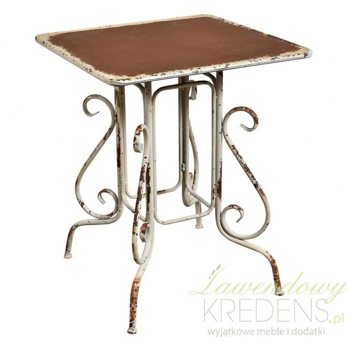 Kwadratowy stolik Garden Green wykonany, tak jak pozostałe meble ogrodowe Belldeco, z metalu i celowo postarzany. Stolik ma zielonkawo-rdzawą kolorystykę i będzie uroczo wyglądał zarówno w ogrodzie jak i na tarasie lub balkonie.