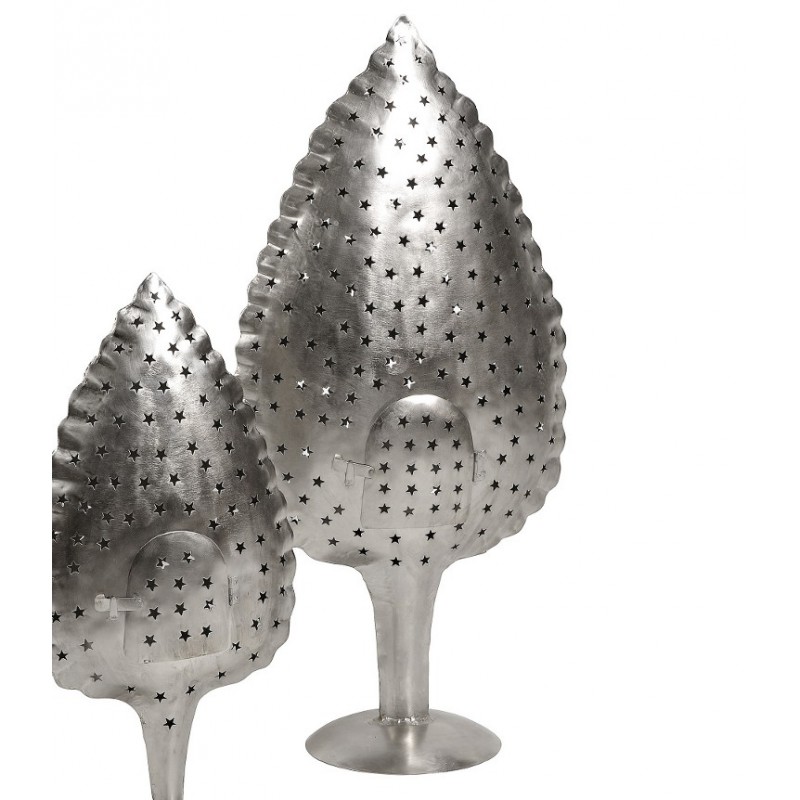 Duże, metalowe lampiony Belldeco w kształcie liścia wykonane w całości z metalu.