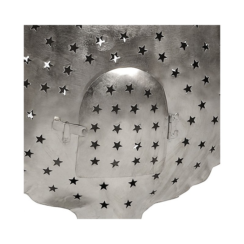 Lampiony Orient Liść to duże, metalowe lampiony Belldeco w kształcie liścia. Z jednej strony lampiony posiadają otwierane okienko służące do włożenia do lampionów świeczki. Lampiony Orient wykonane są z grubej blachy i posiadają liczne dziurki w kształcie gwiadek, które bardzo efektownie przepuszczają światło świec. Lampiony świetnie wyglądają zarówno jako lampiony ogrodowe jak i postawione w domu na podłodze lub komodzie.