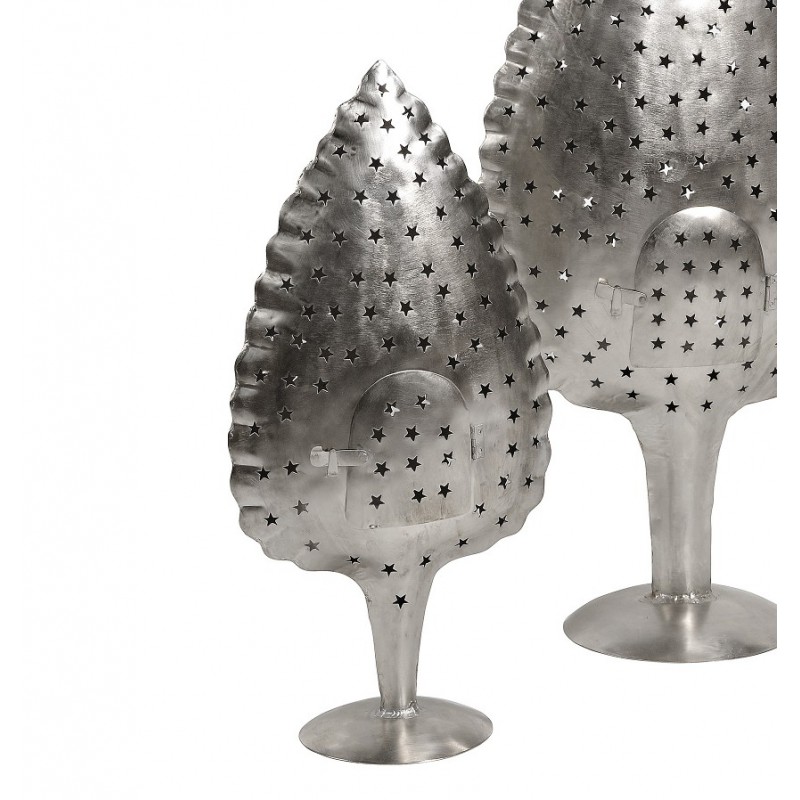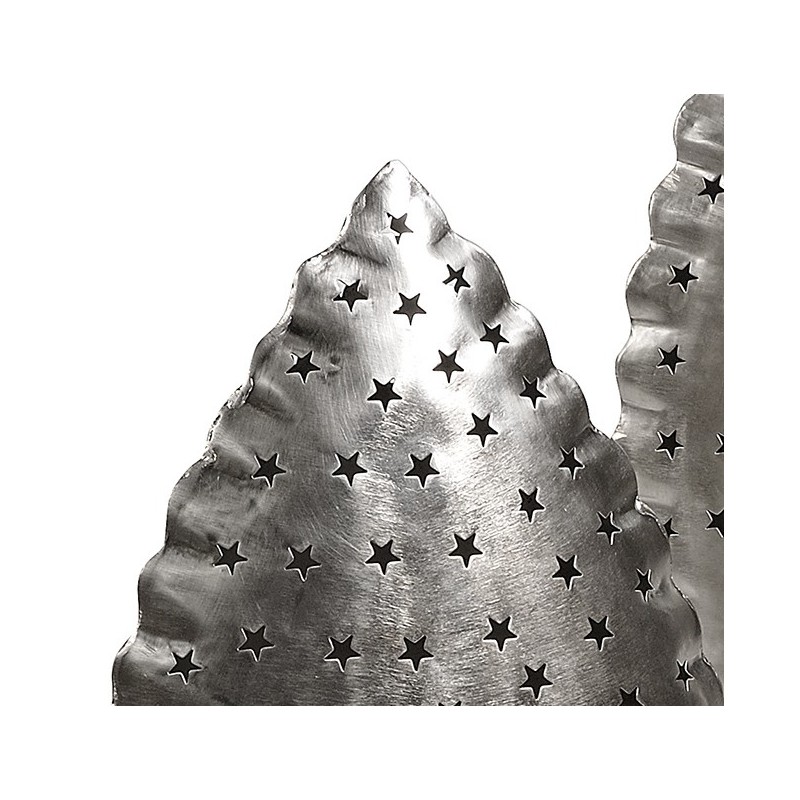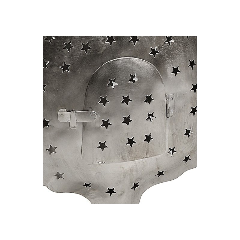 Metalowy lampion Belldeco pięknie przepuszczający światło świec przez dziurki w kształcie gwiazdek.