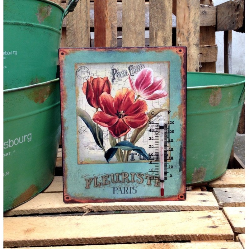Retro termometr ozdobny z tulipanami to świetna alternatywa dla zwykłych, nudnych termometrów. Termomert jest przyczepiony do metalowej tabliczki z kolorowym nadrukiem w stylu retro wykonanym techniką decoupage. Do termometrów polecamy inne prowansalskie dekoracje o podobnych, kolorowych motywach.