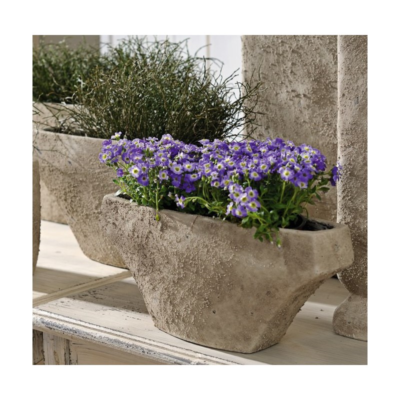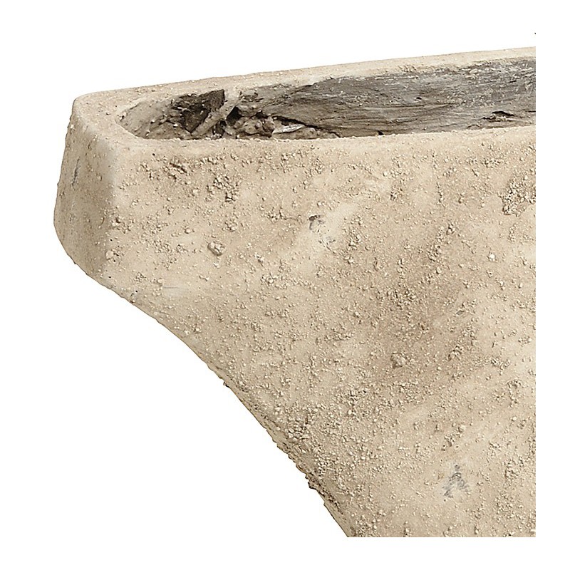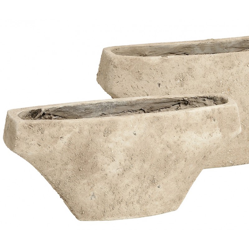 Beżowo-piaskowa osłonka na doniczki o ciekawym kształcie. Osłonka ma surowe wykończenie - jest nieszkliwiona i chropowata w dotyku.