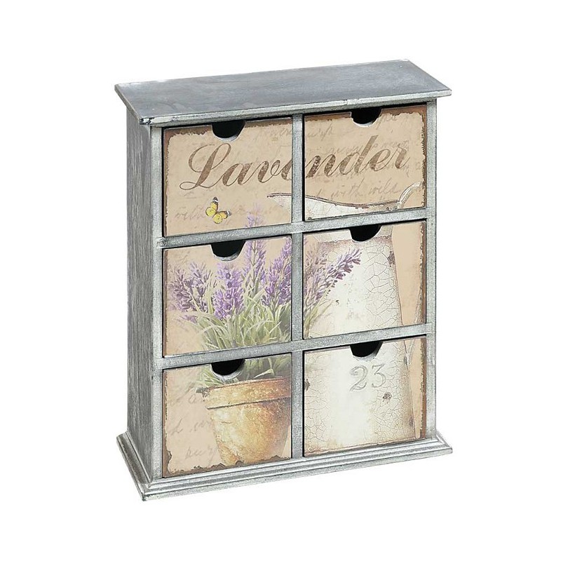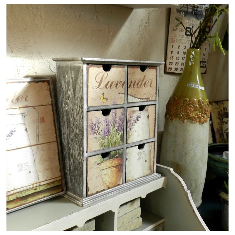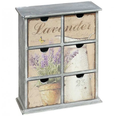 Niezwykle ozdobny pojemnik firmy Belldeco z sześcioma szufladkami gdzie motyw lawendy odgrywa kluczową rolę.